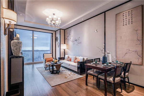 松竹梅,是中華傳統文化中的歲寒三友,松四季常青;竹經冬不凋;梅則迎寒開花。也為高端公寓的內部陳設提供了豐富設計元素,與西方現代的設計手法碰撞出毫無違和的火花。