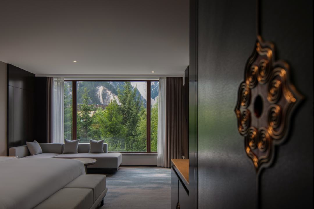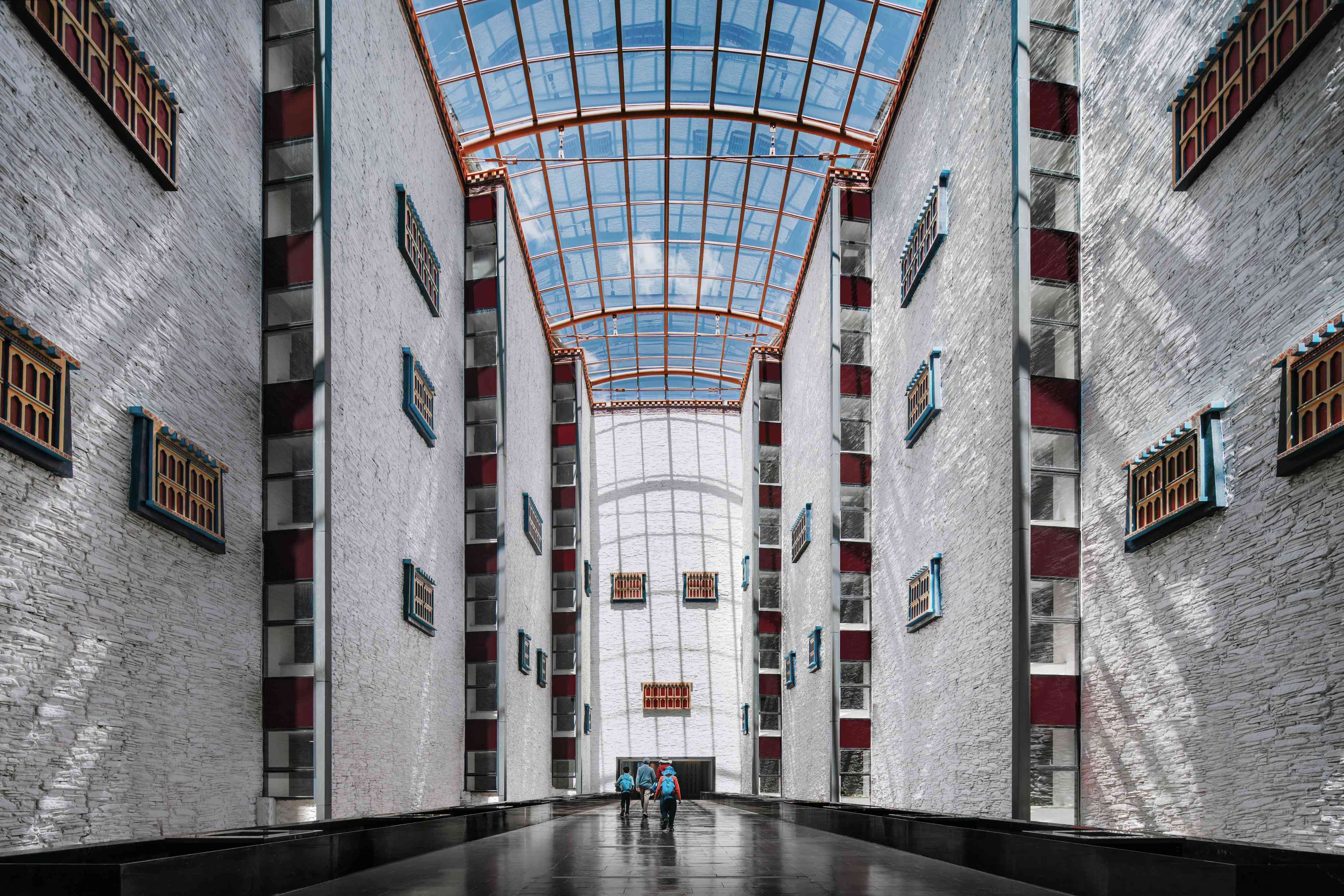 邊瑪墻、經典藏式窗戶用現代手法解構重組,打造朝圣路上的圣殿。