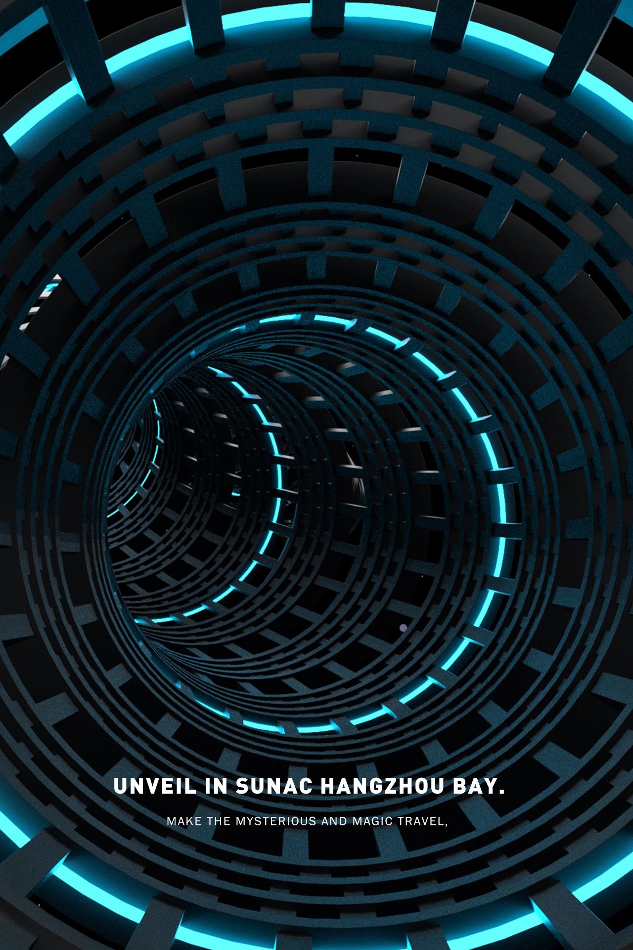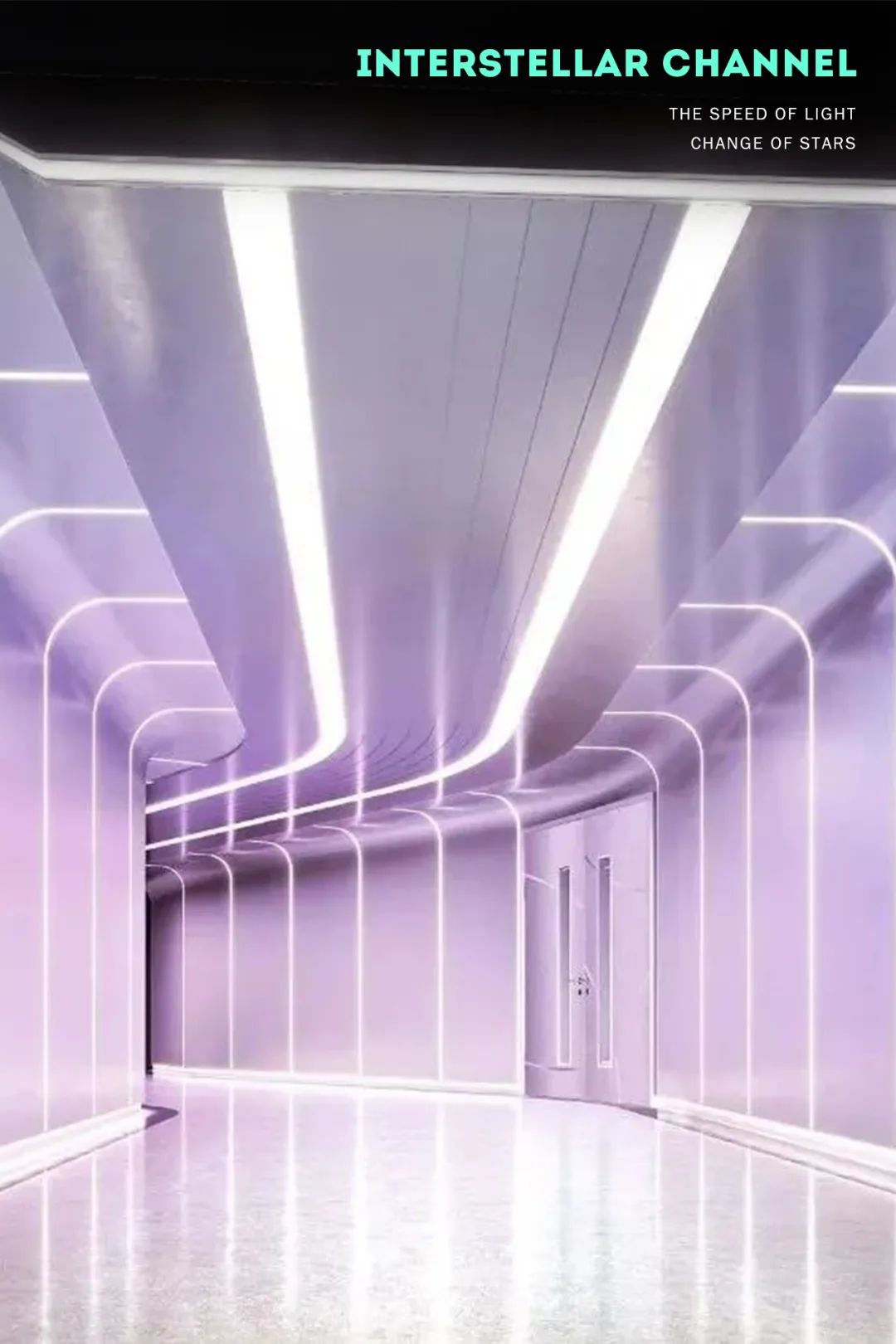 搭乘星際天梯而來,星際隧道里一道道電子動能釋放出秩序井然的光軌,隧道的盡頭光影轉換,指引著旅程的方向。