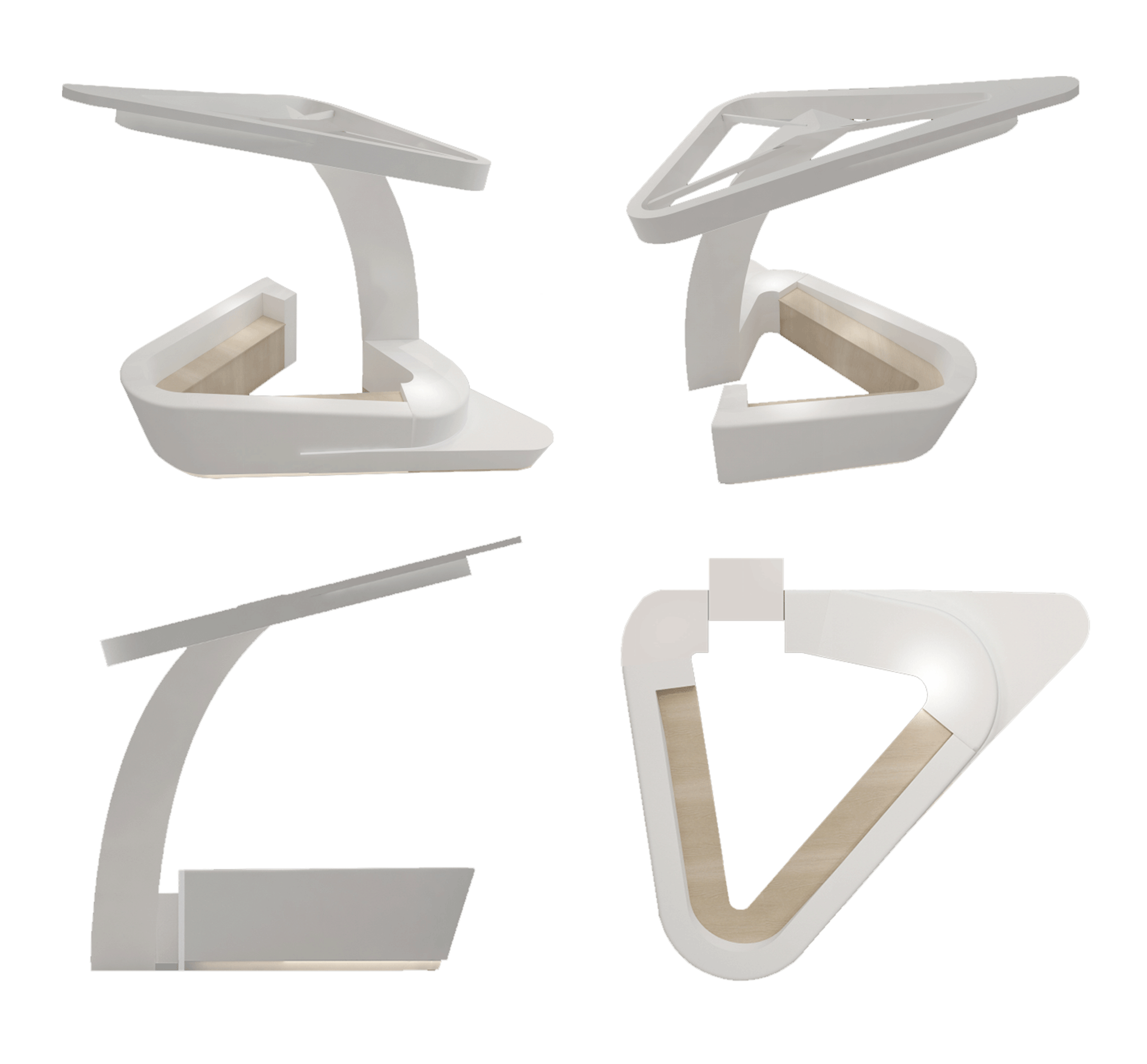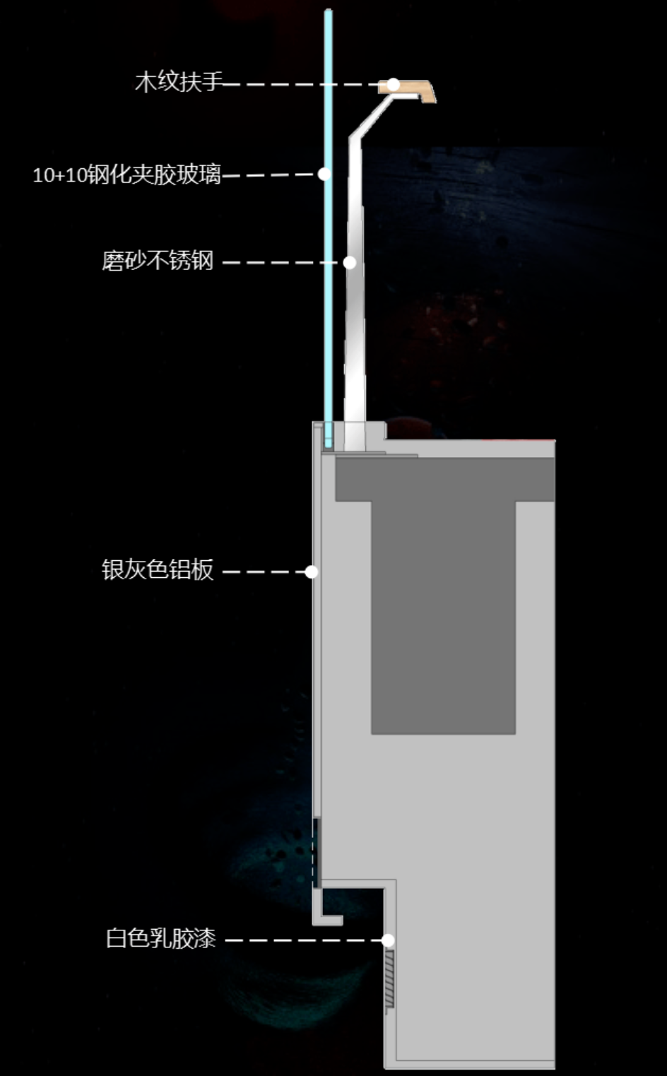 不對稱的柱子采用了直線轉弧的手法把它們整體銜接起來。