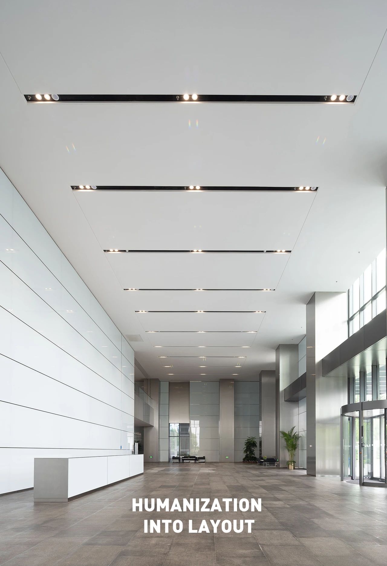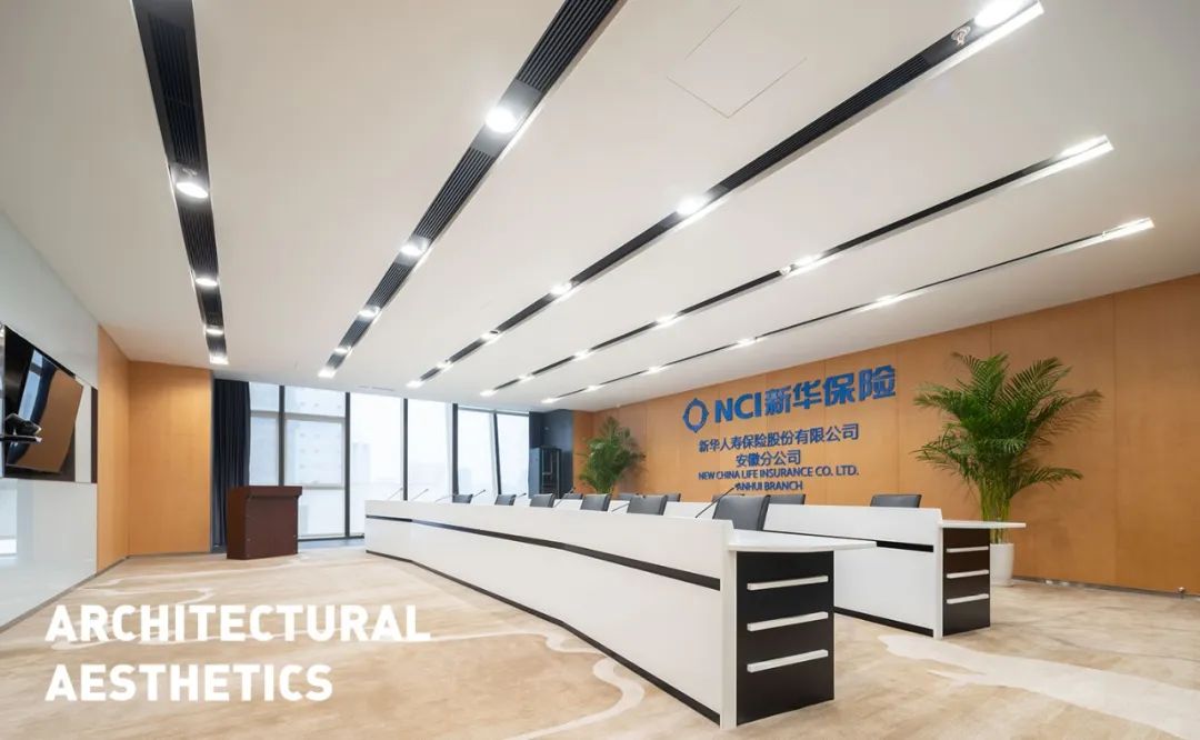 Furthermore, as for interior space composition, simple façade combinations divided by straight line is used. As for colors, light colors comply with the main color of buildings to constitute the basic interior color. In particular, special attention has been paid to cultural background and spirit of the enterprise.