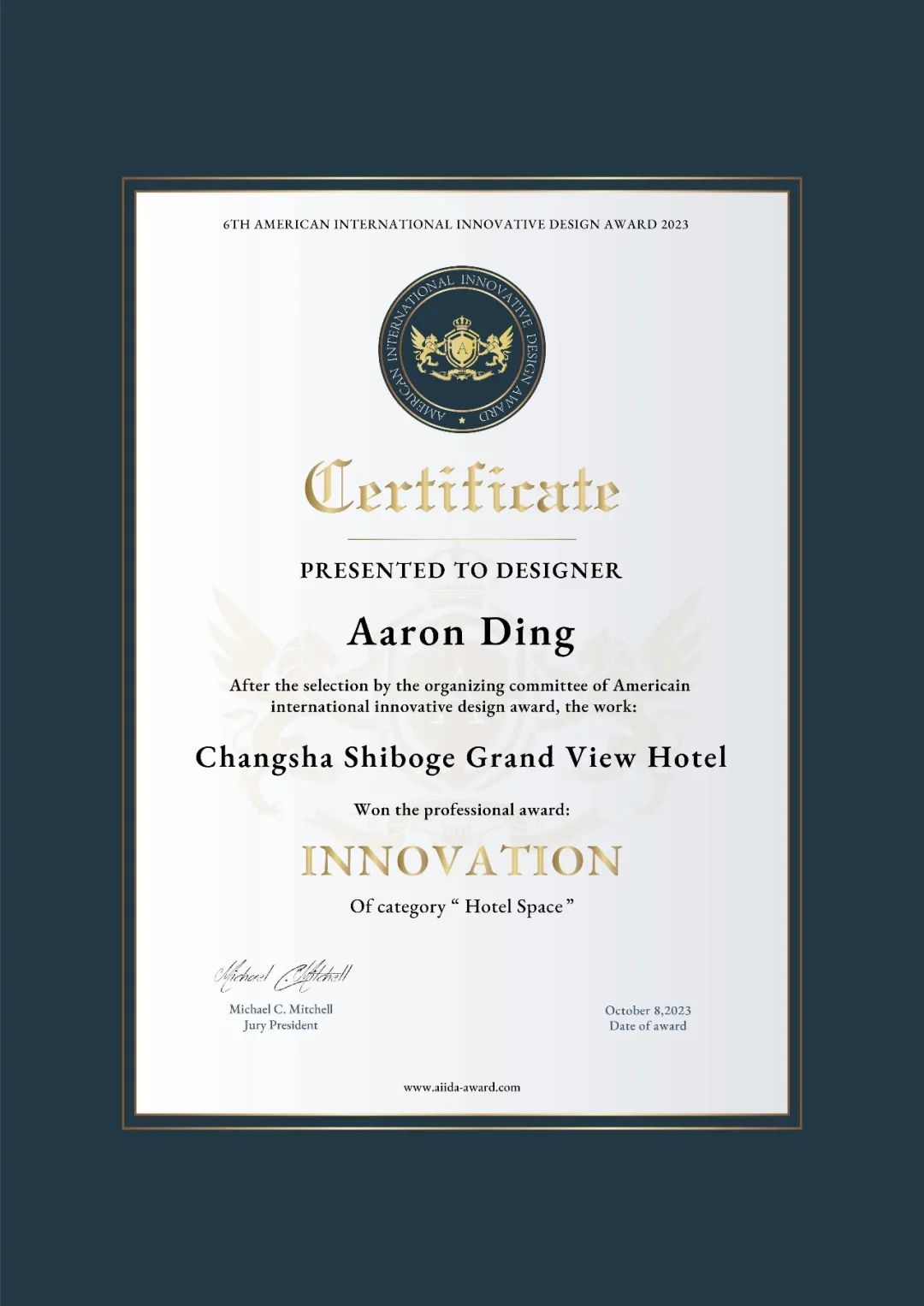 2023美國AIIDA國際設計大獎于近日公布獲獎結果,江河設計JHD憑借作品【長沙施柏閣大觀與施柏閣酒店】,榮獲2023年美國AIIDA國際設計大獎酒店空間類國際創新設計獎。
