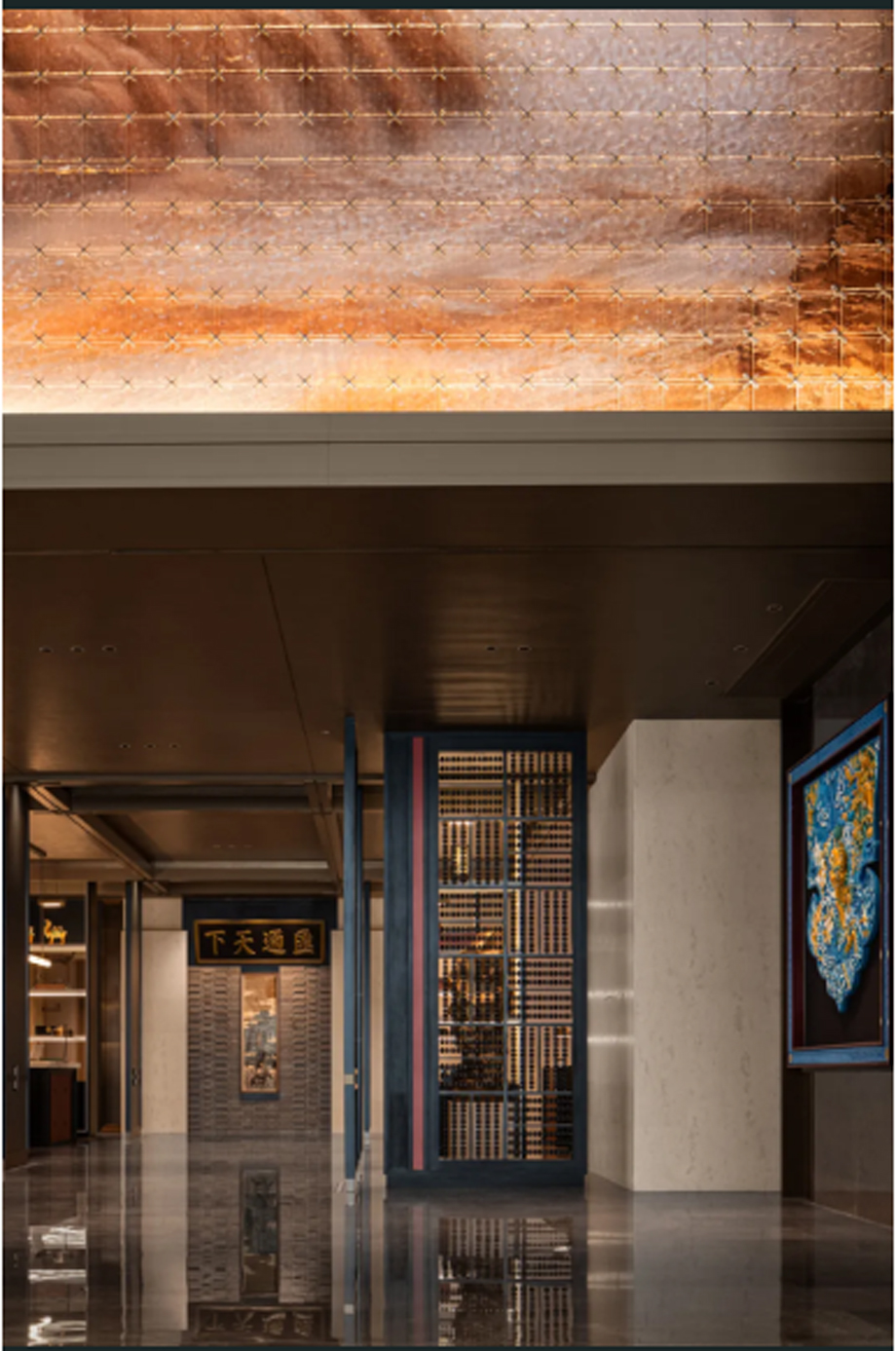 在晉澤昌文旅酒店的接待空間,江河設計JHD以票號賬房文化為主題,巧妙融合長治堆錦技藝、印信文化,精心打造出一個充滿商道文化的接待空間。