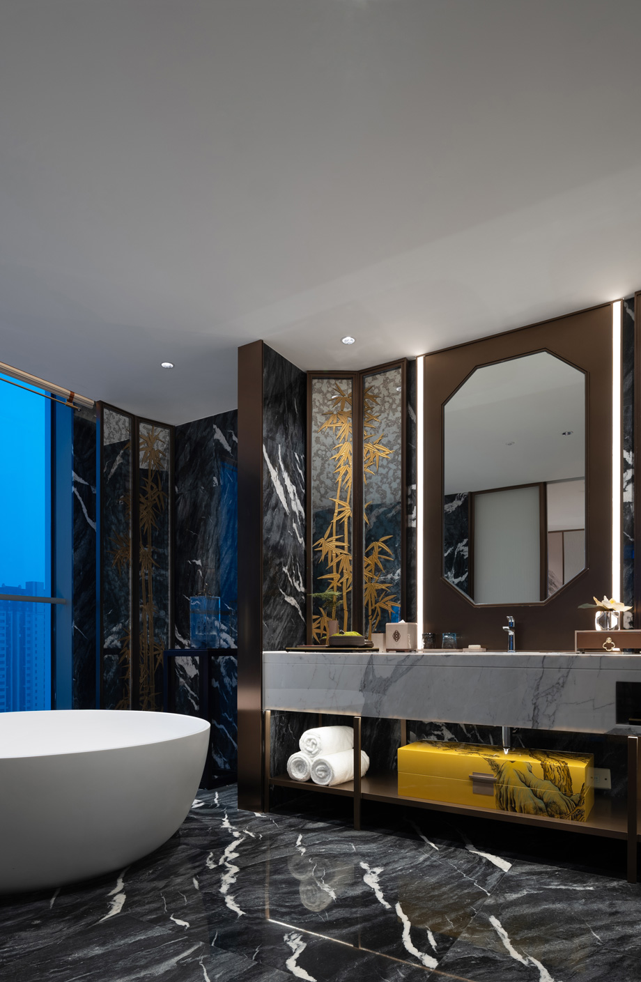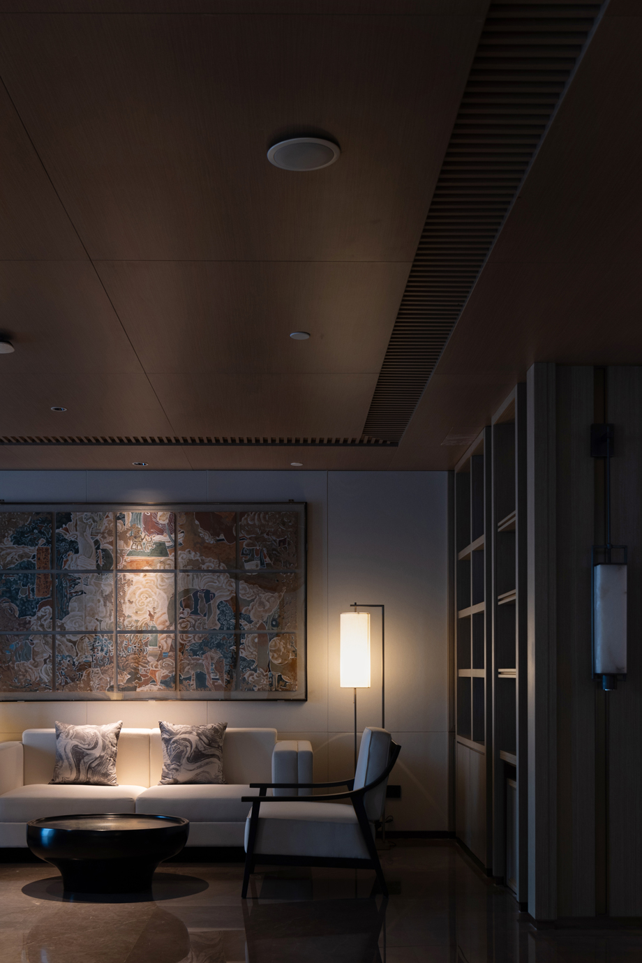 The background of the bed head in the guest rooms are decorated with a painting ofthe Taihang Mountain scenery. The classical decorative style is integrated with theartistic conception of mountains and waters. A peaceful and tranquil site is designed at the foot of the Taihang Mountains, and amidst the mountains and waters, each design detail embodies the wisdom of Doctrine of the Mean as well as the upright and noble style.
