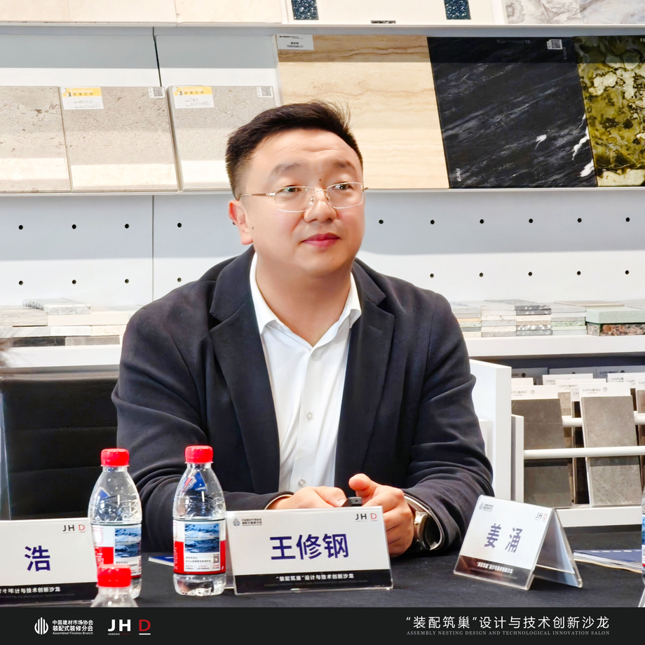 總裁王修鋼致歡迎詞表示:江河設計JHD作為行業領軍企業,始終堅持 “設計驅動工業化” 的發展理念,近年來在裝配式裝修領域構建了 “全專業協同設計 - 模塊化部品研發 - 數字化施工管理” 的全鏈條服務體系。談及行業未來,總裁王修鋼強調:“裝配式裝修不僅是技術的革新,更是對人居體驗的重新定義。我們期待與行業同仁一道,以設計創新和技術突破賦予空間溫度,共同書寫中國裝配式裝修的‘江河樣本’”。
