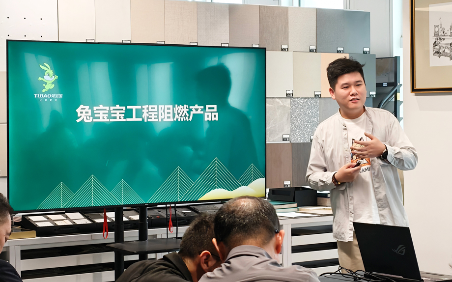 德華兔寶寶工裝運營公司北方大區經理施海峰,全面介紹兔寶寶發展歷程,不斷推出更高標準的環保產品,以推進行業綠色進程為己任,打造健康家居新生活。同時兔寶寶品牌被列入《政府采購綠色清單》,是政府認可的綠色采購品牌,同時也是APEC峰會、世博會、G20峰會、聯合國世界地理信息大會等重大工程指定材料。并對無機阻燃飾面板、蜂窩鋁阻燃飾面板、難燃生態免漆板等多個核心產品的性能進行介紹,兔寶寶用硬核科技證明:裝配式裝修不僅能“裝得快”,更能“裝得美、裝得穩”。