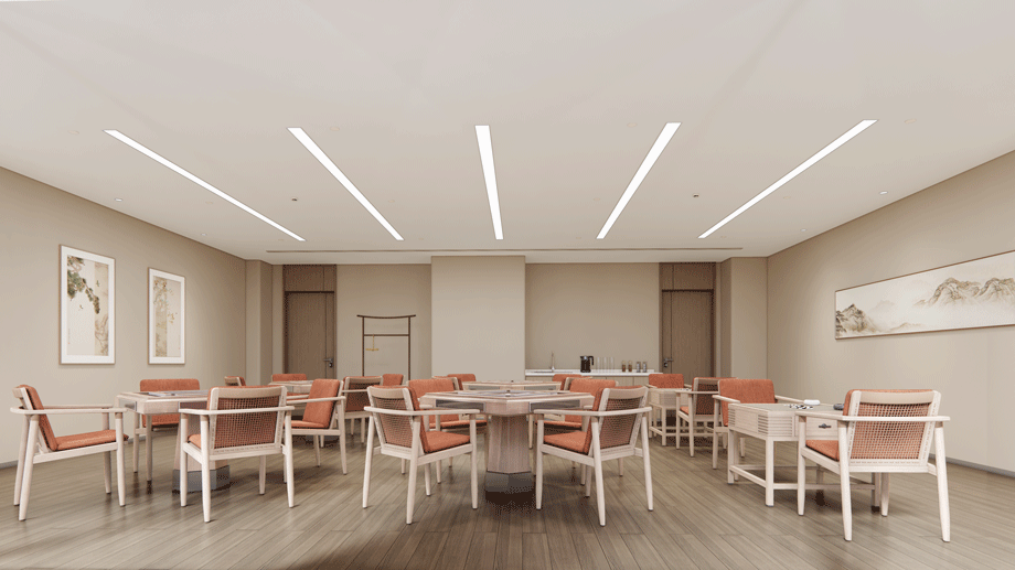 接待、洽談緊鄰入口大廳、以茶室的功能形式接待老人及家庭成員,前期作為洽談區,運營后,可作為老年人品茶、論茶的活動室。