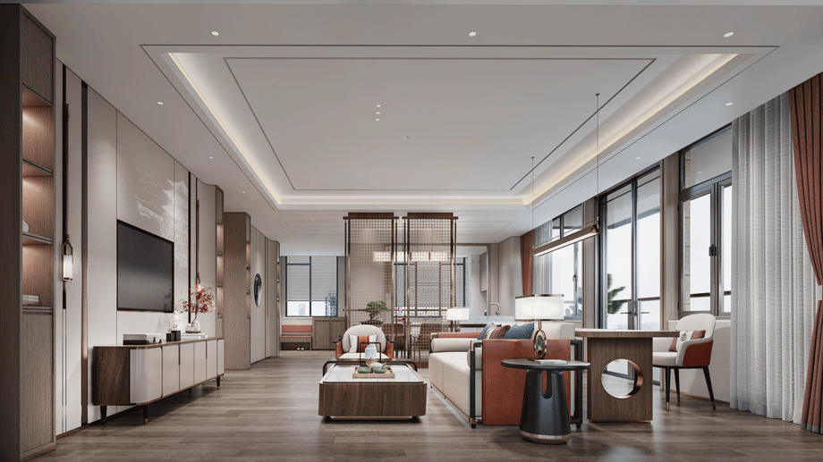 入戶大堂是整體空間的引領者,新中式設計風格,吊頂造型詮釋了主體元素“濟南之山”的形式。打破常規大堂設計手法,本案營造了酒店會所的氛圍,典雅而高貴,獨特的養老大廳,園中園設計的融入,進一步刻畫了中式風格。