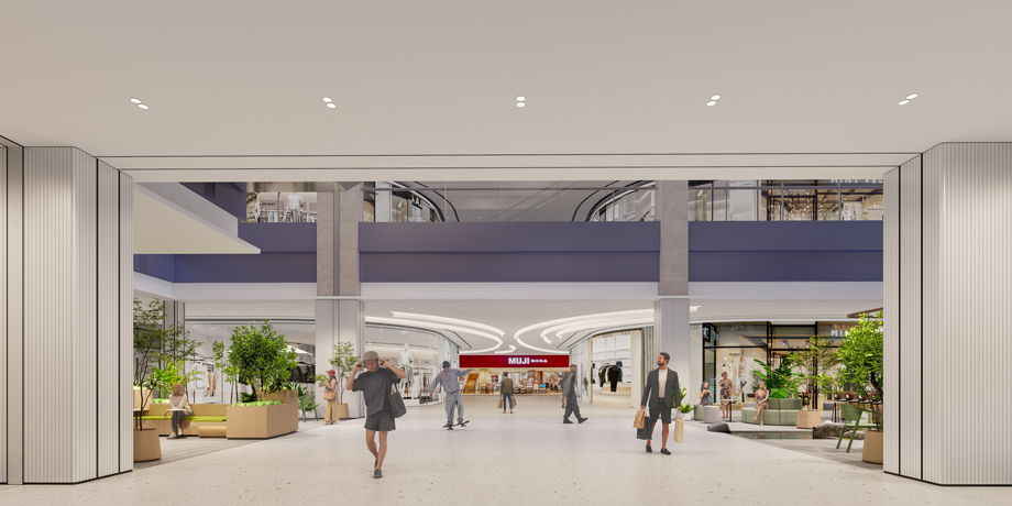 在中庭空間的改造設計中,天花采用流線型設計,模擬山丘的等高線形態,賦予空間以動感和層次感。這種設計不僅美化了視覺效果,還引導顧客的行走方向,增強空間的導向性。