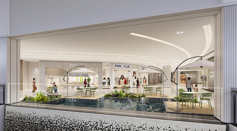門廊兩側設置互動式水景裝置,結合昆明“水城”特色,讓顧客在入門瞬間即感受到自然的靈動與活力。